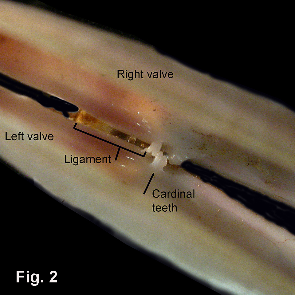 view if Gari livida showing hinge and cardinal teeth (C.074201)