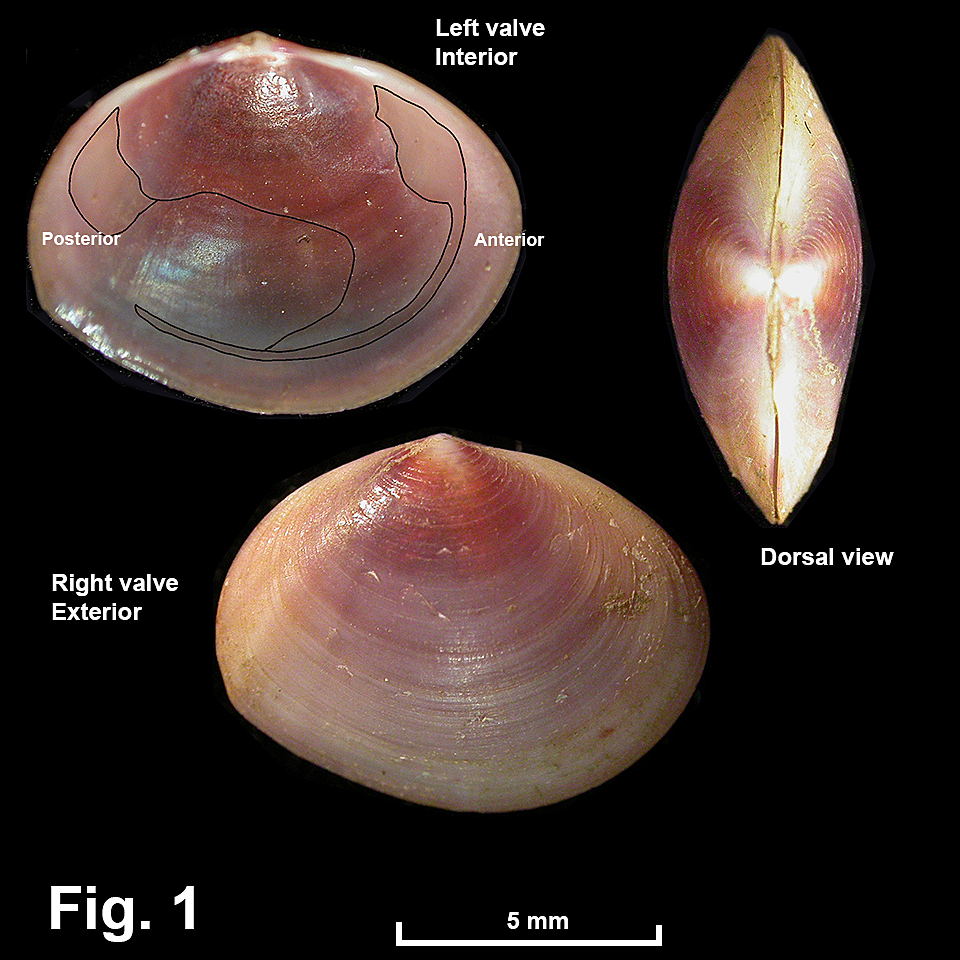 well defined; pallial sinus deep. Hinge with 2 cardinal teeth, 1