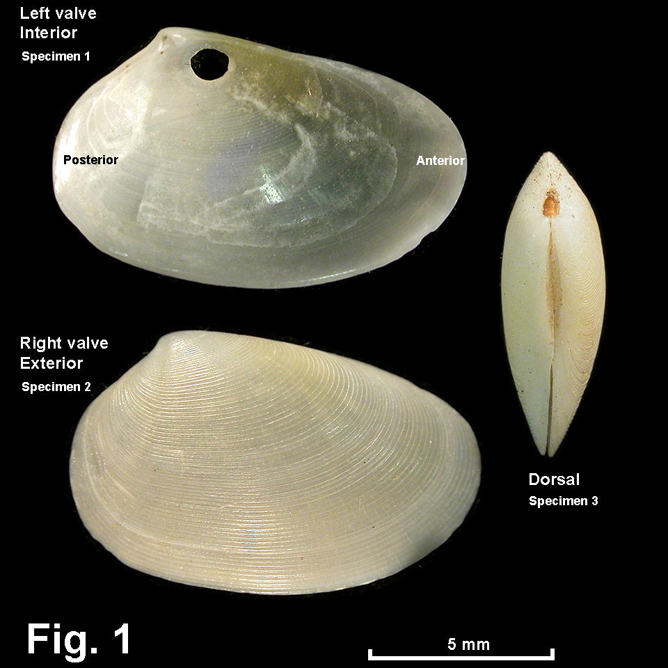 Shell translucent. Shape triangularly ovate, umbo at