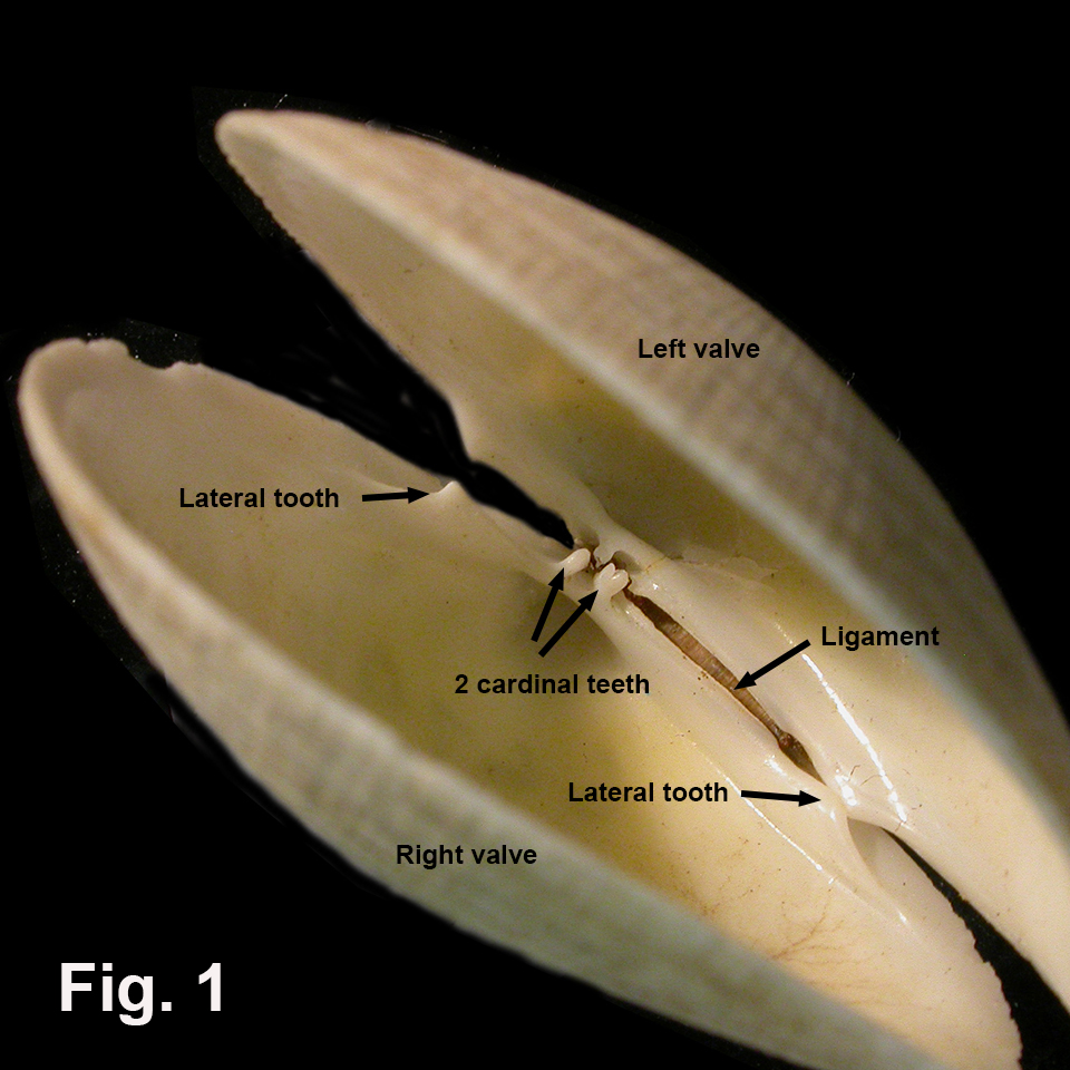 The Tellinidae is a very large family of bivalves encompassing about 500 species (Huber, 2015). As presently understood, the family is distributed worldwide, with half of the species occurring in the Indo-West Pacific. It is well represented in Australia, with numerous Indo-West Pacific species in the north and a small group of endemic species in southern Australia. NSW straddles these zones with representatives of both faunal groups. Tellinid shells are variable between species in size, shape, inflation and external sculpture. Moreover, the extent of intraspecific variation is increased by beach wear and fading in sunlight. Shells are laterally compressed to some degree; NSW species vary from very slim in Tellinota albinella to moderately inflated in Strigilla euronia. Shell shape is variable, from elongate to almost circular. The character which defines the family is the cruciform muscle at the base of the siphons, but its attachment scar is barely evident on the shell. The most obvious shell character is a distinct flexure in the shell posteriorly, well-illustrated in Macomona deltoidalis. This flexure is present in all species to some degree but varies from strong to barely noticeable. The interior of tellinid shells shows scars from attachment of anterior and posterior adductor muscles, and there is a large pallial sinus where the siphons are accommodated when retracted. The depth of the sinus varies between species, in some reaching as far forward as the anterior adductor muscle scar. The hinge has two cardinal teeth, one usually bifid, and usually two lateral teeth, but laterals are absent in the subfamily Macominae (Fig. 1) Tellinids bury deeply in sand or muddy sand, sometimes in coarse sand or shelly gravel. They are active burrowers and can usually rebury when disturbed. They have long, separate siphons that extend to the surface, the inhalant siphon drawing in water laden with suspended particles, and the exhalant siphon expelling water and waste. In NSW, some species are found living in open ocean surf beaches, but others are restricted to estuaries like Sydney Harbour, Port Hacking and Port Stephens. Family Reference The Australian species were described in 1992, but have been updated by more recent work: Lamprell, Kevin and Whitehead, Thora. 1992. Bivalves of Australia vol. 1. Crawford House Press, Bathurst. The family worldwide was catalogued most recently in 2015: Huber, M., Langleit, A. and Kreipl, K. 2015 Tellinoidea Blainville, 1814 pp. 167-297 in Huber, M. 2015. Compendium of Bivalves 2. Conchbooks, Harxheim, Germany. Coverage All NSW species are detailed here. The following three species are not included because their southern distributional limits do not extend into New South Wales. Jitlada philippinarum (Hanley, 1844). Lamprell & Whitehead (1992) list this (as Macomona australis (Deshayes, 1854)) as occurring in northern NSW, which is possible, but I have seen no substantiated records from NSW. The Australian Museum’s southernmost specimen is from Moreton Bay, Qld. Serratina capsoides (Lamarck, 1818). Lamprell & Whitehead (1992) list this (as Tellina capsoides Lamarck, 1818) as occurring in northern NSW, which is possible. The only record from NSW in the Australian museum is from a subsurface core sample of unknown age. Otherwise, the Australian Museum’s southernmost specimen is from Moreton Bay, Qld. Tellina (Obtellina) bougei G.B. Sowerby III, 1909. Lamprell & Whitehead (1992) note that this has been recorded from NSW, but I have been unable to trace the record and it is probably incorrect. Jactellina obliquaria (Deshayes, 1855). One freshly dead adult shell consisting of paired valves (Museum and Art Gallery of the Northern Territory P.51189) was collected subtidally from the Julian Rocks, east of Cape Byron in northernmost New South Wales, but that tropical Indo-Pacific species is probably only vagrant in New South Wales (R.C. Willan pers. comm.) so it is not detailed here. Identification Notes Shell Form Shell shape varies from elongate, compressed (as Pharaonella astula) to almost circular and well inflated (as Strigilla euronia). Hinge There are two cardinal teeth in each valve, one usually bifid, and two lateral teeth, except in Sylvanus lilium where the laterals are weak. Fig. 1 shows an interior view of the hinge of Pseudarcopagia botanica, which is typical of NSW species of the family. Shell Interior The anterior and posterior muscle scars, pallial line and pallial sinus are drawn in on the photographs for each species. The pallial sinus is large in all NSW species, sometimes reaching as far forward as the anterior muscle scar. Fig. 1: Twofold Bay, NSW, dredged in 15 m (C.66796)